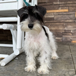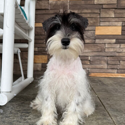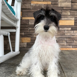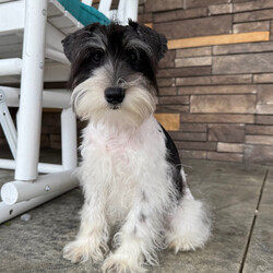 Hi, I'm Vivian! I'm a 20-week-old female Miniature Schnauzer with a beautiful black coat, born on May 9, which makes me a Taurus pup. I am ready now to plan my trip to my forever family. Once I reach my adult size, I'm expected to weigh between 10–18 lbs. I'm APRI registered. I will bring love, laughter, and a bit of puppy mischief.
