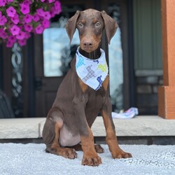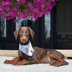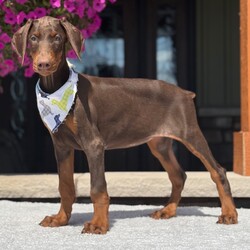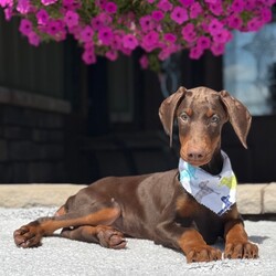 Hi, I'm Zooma! I'm a 14-week-old female Doberman Pinscher with a beautiful red & rust coat, born on June 20, which makes me a Gemini pup. I am ready now to plan my trip to my forever family. Once I reach my adult size, I'm expected to weigh between 50–100 lbs. I'm AKC registered. The bond that we'll build, of love and affection, will make a lifelong partnership and an unforgettable connection.