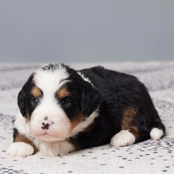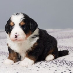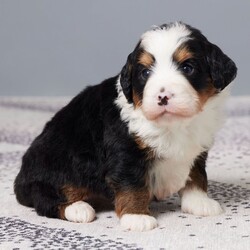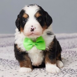 Hi, I'm Zion! I'm a 6-week-old male Bernedoodle with a beautiful black, tan & white coat, born on August 12, which makes me a Leo sign. I'll be ready to go home to my forever family after October 8, once I'm grown enough to leave my litter. One puppy kiss, and you'll never want to let me go, I just know it.