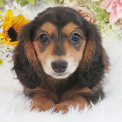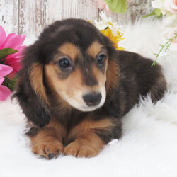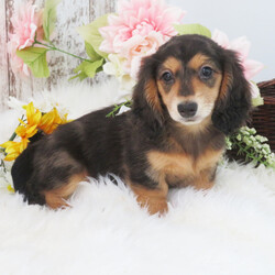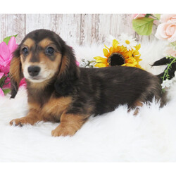 Hi, I'm Myla! I'm a 12-week-old female Dachshund with a beautiful silver dapple coat, born on July 3, which makes me a Cancer pup. I am ready now to plan my trip to my forever family. I'm ACA registered. I'm looking forward to filling your days with joy and my playful antics.
