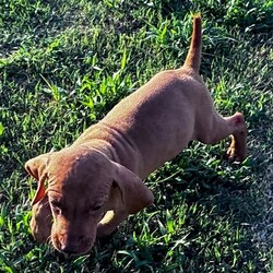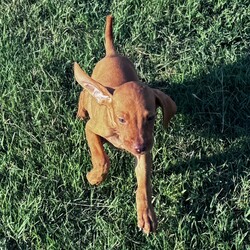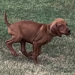 Hi, I'm Chance! I'm a 10-week-old male Vizsla with a beautiful golden rust coat, born on July 12, which makes me a Cancer pup. I am ready now to plan my trip to my forever family. Once I reach my adult size, I'm expected to weigh between 50–65 lbs. I'm AKC registered. Everyone loves to pet me, and I don't mind at all! I can lay there for hours soaking up every bit of affection.