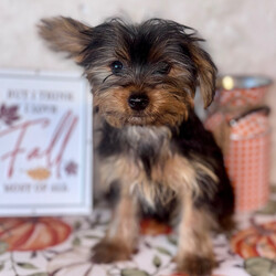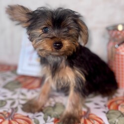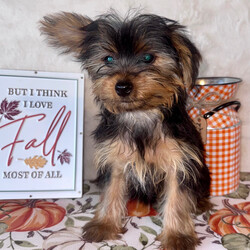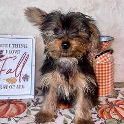 Hi, I'm Maze! I'm a 12-week-old male Yorkshire Terrier with a beautiful black & tan coat, born on June 28, which makes me a Cancer pup. I am ready now to plan my trip to my forever family. Once I reach my adult size, I'm expected to weigh between 5–10 lbs. I'm APRI registered. I will fill your home with love and my wagging tail.