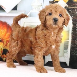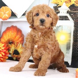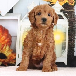 Hi, I'm Harrison! I'm an 8-week-old male Goldendoodle with a beautiful red coat, born on July 26, which makes me a Leo pup. I am ready now to plan my trip to my forever family. I'm all set to bring joy, love, and a wagging tail to your life.