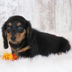 Hi, I'm Chester! I'm a 9-week-old male Dachshund with a beautiful black & tan coat, born on July 19, which makes me a Cancer pup. I am ready now to plan my trip to my forever family. I'm ACA registered. My playful spirit will bring joy and laughter to your home.