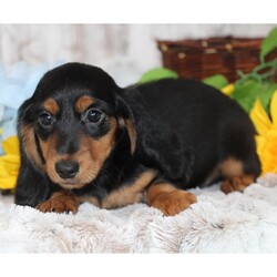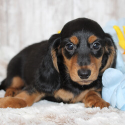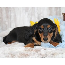 Hi, I'm Lightning! I'm an 11-week-old male Dachshund with a beautiful black & tan coat, born on July 9, which makes me a Cancer pup. I am ready now to plan my trip to my forever family. I'm ACA registered. I'm ready to be your little ball of love and joy.