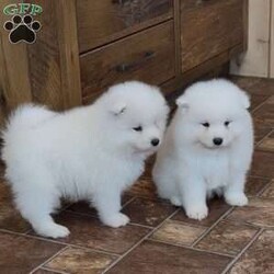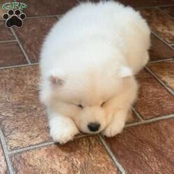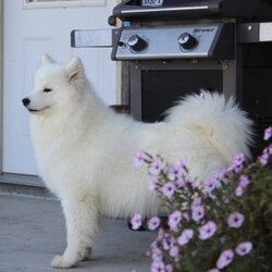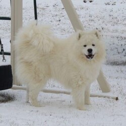 Meet Floyd! With his European bloodlines He has a stunning thick coat and an adorable sammy smile that with melt your heart! He is a fun loving guy and absolutely loves to play in the snow, but he also is very gentle and cuddly and will happily take any snuggles and belly rubs you give him! He is very friendly and loves people and other dogs and puppies! If your looking for a chill, active addition to your family, Felix is your type of guy!