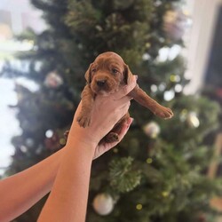 Mark is a healthy playful puppy. He loves to be with the kids. He comes vet checked, vaccinated and dewormed. His mother is an Irish setter and father is an akc registered mini poodle