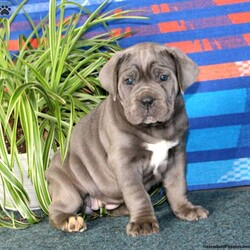 Betsy is a stately Cane Corso puppy who can be registered with the ICCF. This cutie comes home with a 30 day health guarantee as well as an extended genetic health guarantee, both provided by the breeders. Betsy has been seen by a vet and is up to date on shots and de-wormer. This sturdy girl is socialized, family raised with children, and ready to meet you!