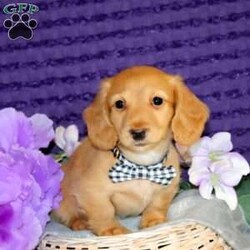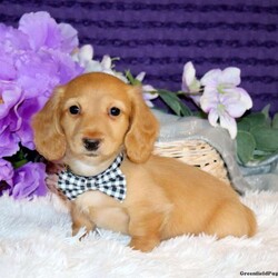 Marshall is a precious Miniature Dachshund puppy who can be registered with the ACA and is microchipped. This cutie comes home with a 30 day health guarantee plus an extended genetic health guarantee, both provided by the breeder. Marshall has been seen by a vet and is up to date on shots and de-wormer. This sweet little one is socialized and ready to meet you!