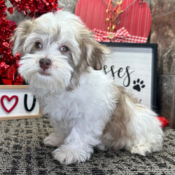 Hi, I'm Corbin! I'm a 15-week-old male Havanese with a beautiful chocolate sable coat, born on October 28. I am ready now to plan my trip to my forever family. Once I reach my adult size, I'm expected to weigh between 12–14 lbs. I'm AKC registered. I want you to want me, I need you to need me, and I'd love you to love me... forever together.