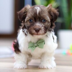 Hi, I'm Tango! I'm a 5-week-old male Havanese with a beautiful chocolate coat, born on January 2. I'll be ready to go home to my forever family after February 27, once I'm grown enough to leave my litter. When I reach my adult size, I should weigh between 9–12 lbs. I'm AKC registered. My love for you will be as boundless as my puppy energy.