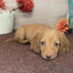 Hi, I'm Omer! I'm an 8-week-old male Dachshund with a beautiful red coat, born on February 5. I'll be ready to go home to my forever family after April 2, once I'm grown enough to leave my litter. I'm AKC registered. I can't wait to turn your home into a place filled with love and puppy giggles.