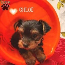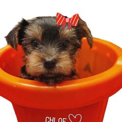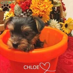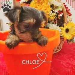 Chloe ~ This little Yorkie girl is such a petite darling furbaby ! Playful, sweet, shy and cuddly, she will add a lot of happiness to your family. She is Vet checked and in good health, and comes with a 30 day Health guarantee. She is also up to date on her shots and dewormer. Her mother is an ICA Registered 8 lb. blue and gold Yorkie, and her father is an ACA Registered black and brown 3.5 lb. Yorkie. She should remain quite small. If you are looking for a sweet and loving companion, you will be pleased with this delightful and beautiful little girl.
