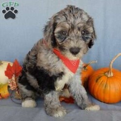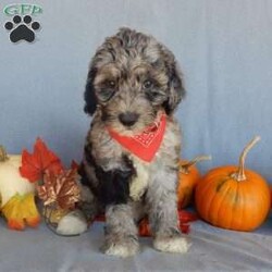 Have you been looking for a new furry friend? Look no further! I have the sweetest little sheepadoodle face you have ever seen… My name is Bear and I would love to come home with you! I am sure with one look into my warm, sweet eyes and I’ll be sure I will have captured your heart already! I am very happy, playful and very kid friendly! I stand out above the rest with my uniquely marked blue merle coat!! Full of personality and always ready to give amazing puppy kisses, I would love to fill your home with all of my puppy love! I have been vet checked and I am up to date on vaccinations and dewormings and I will also come with a 1-year guarantee with the option of extending it to a 3-year guarantee. We ship anywhere in the USA!!! My mother is our sweet, loving 44# sheepadoodle named Lily, and the father is Cory, a 15# blue merle mini poodle! That makes me an F1b medium sized sheepadoodle and I will grow to approx. 25-35# and I will be hypoallergenic and nonshedding!! Why wait when you know I am meant to be yours? Call or text Martha to make me the newest addition to your family and get ready to spend a lifetime of tail wagging fun! (7% sales tax on in home pickups)