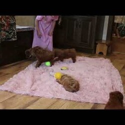 Tazzy is a socialized and sweet Cockapoo puppy who loves to play! This cuddly little one is being raised by the Zimmerman family and their children. She is ready to be the sweetest addition to your family! Tazzy is up to date on shots and de-wormer, microchipped, and has been seen by a vet. She’ll come home with a 30 day health guarantee and an extended genetic health guarantee, both provided by the breeders.