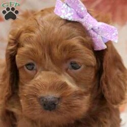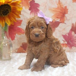 This is Betty, a wiggly Cockapoo puppy with a happy demeanor! This sweet girl is socialized, family raised with children, and eager to meet you! She has been seen by a vet, is up to date on shots and de-wormer, and will be microchipped. Betty also comes home with a 30 day health guarantee and an extended genetic health guarantee, both provided by the breeder.