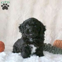 Meet Sampson, a dreamy Cavachon puppy who is sure to steal your heart! This adorable boy loves spending time with people and is especially great with children. He is family raised, well socialized, and eager to meet you! Sampson has been seen by a vet and is up to date on shots and de-wormer. He’ll also come home with a health guarantee provided by the breeder.