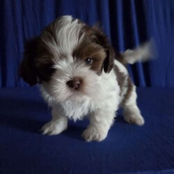 Harper is a very sweet and well socialized puppy. He loves to romp and play with his siblings. His parents are approximately 8 #. Please contact us to make sweet Harper your very own puppy!