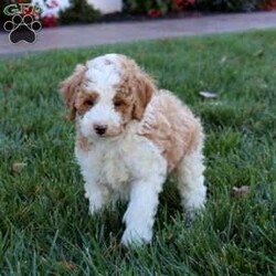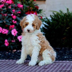 Hoops is a socialized and sweet natured Miniature Poodle puppy who is ready to meet you! This happy boy can be registered with the AKC and will come home with a 30 day health guarantee and an extended genetic health guarantee, both provided by the breeder. Hoops also has been seen by a vet and is up to date on shots and de-wormer.