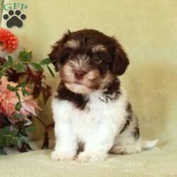 Meet Mocha! This super cute Havapoo puppy is vet checked & up to date on shots & wormer, plus comes with a health guarantee provided by the breeder! Mocha is well socialized & can’t wait to join in on all the fun at your place!