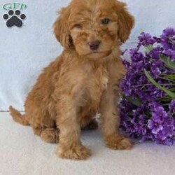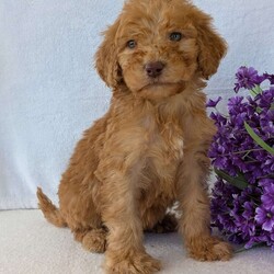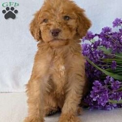 Hello everyone! Meet our precious little boy, Brady. He is a beautiful standard goldendoodle with a beautiful coat of soft wavy hair! He has a very sweet temperament and is super playful! His parents are both goldendoodles. If you are looking for a new best friend Brady would make the perfect little guy! He loves the outdoors an also love to cuddle up on the sofa and giving kisses! Brady will be between 40 and 50lbs fully grown. He will be available to his new home on October 28th. We guarantee a very Happy and healthy puppy!