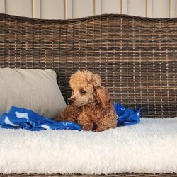 Marshall is the most lovable Toy Poodle puppy! He is petite, friendly, and can be registered with the AKC. The little guy comes home with a 30 day health guarantee and an extended genetic health guarantee, both provided by the breeder. Marshall has been seen by a vet and is up to date on shots and de-wormer. He is socialized, family raised with children, and ready to meet you!