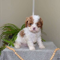 Meet Teddy! This charming Cavapoo puppy is vet checked & up to date on shots & wormer, plus comes with a health guarantee provided by the breeder! Teddy is well socialized & currently being family raised with children!
