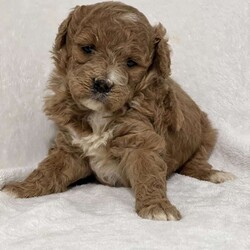 Mariam is an absolutely adorable Mini Goldendoodle with a soft, fluffy coat, bright expressive eyes, and the sweetest little teddy-bear face. Her curly fur and dainty size make her look like a living stuffed toy—completely irresistible and ready to melt hearts!