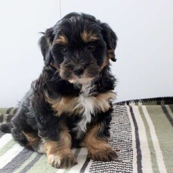 Daphne is a happy and lovable Miniature Bernedoodle puppy waiting to get to know her forever family! Look forward to lots of fun with this sweetie in your life! Daphne comes home a 30 day health guarantee provided by the breeders, plus has been seen by a vet and is up to date on shots and de-wormer. This fluffy cutie is socialized, family raised with children, and ready to meet you!