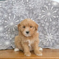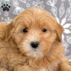 Check out this super cute F1B Mini Goldendoodle puppy, Kacey! This loving F1B Mini Goldendoodle puppy is vet checked & up to date on shots & wormer, plus comes with a health guarantee provided by the breeder! Kacey is well socialized & currently being family raised with children!