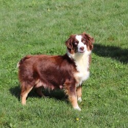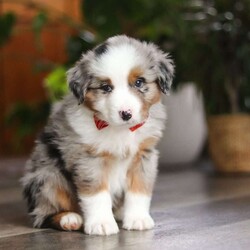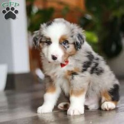 Hi, I’m Ghirardelli, a sweet and playful AKC Miniature Australian Shepherd with a heart full of love and a tail that never stops wagging! I’m curious, energetic, and always ready for an adventure, whether it’s exploring new places or snuggling up for some cozy cuddle time. With my soft, fluffy coat and bright, sparkling eyes, I love making new friends wherever I go. Chasing a ball, learning new tricks, or just hanging out with my favorite humans—those are my happiest moments, filled with joy and affection every single day.