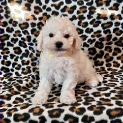 Meet this handsome boy, Pickles! He is a sweet & loving Bichon puppy! Born December 11th, 2025, he is ready to find his loving forever family. He has been raised around children, socialized, and is sweet and so playful with a wonderful personality. He is up to date on shots & wormer and comes with both a 30 day, and 1 year genetic health guarantee. Call us today to make this boy yours!