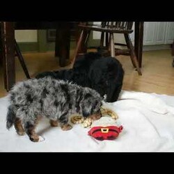 Franklin is a friendly F1B Miniature Bernedoodle puppy with a sunny disposition! This playful boy comes home with a 30 day health guarantee and an extended genetic health guarantee, both provided by the breeders. Franklin has been seen by a vet and is up to date on shots and de-wormer. This cuddly cutie is socialized, family raised with children, and ready to meet you!