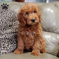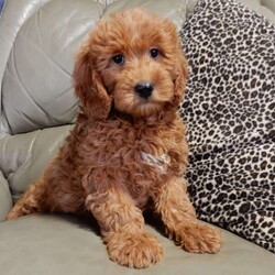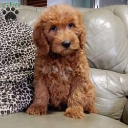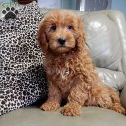 Get ready for some puppy snuggles! My name is Kole and I’m the sweetest F1b mini goldendoodle! One look into my warm, loving eyes and at my super soft fluffy coat and I’ll be sure to have captured your heart already! I’m very happy, playful and very kid friendly and I would love to fill your home with all my puppy love!! I have a very sweet personality, and I love giving kisses. I stand out above the rest with my sweet, loving personality and my beautiful red coat and my cute puppy eyes! I will come to you vet checked and up to date on all vaccinations and dewormings . I come with a 1-year guarantee with the option of extending it to a 3-year guarantee and shipping is available! My mother is Jody, an F1 Goldendoodle weighing 35# and my father is Atlas, an AKC 16# mini Poodle and he is genetic tested! Both of my parents are very sweet and kid friendly which will make me the same!! I will grow to approx. 20-25# and I will be hypoallergenic and non shedding!!!… Why wait when you know I’m the one for you? Call or text Martha to make me the newest addition to your family and get ready to spend a lifetime of tail wagging fun with me! (7% sales tax on in home pickups)