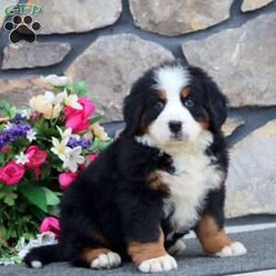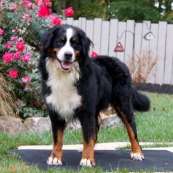 Randy is a sweet natured Bernese Mountain Dog puppy who can be registered with the AKC. This cutie is happy and lovable! Randy is socialized, family raised, and ready to meet you. Vet checked and up to date on shots and de-wormer, this beautiful pup comes home with health guarantees provided by the breeders. Randy will be a wonderful addition to his forever family!