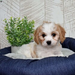 Gilligan is your happy-go-lucky little shadow. Cavachons are known for being fantastic family companions, and he takes that job very seriously. He’s gentle with kids, polite with strangers, and fully convinced your lap belongs to him. His fluffy coat and wagging tail are always in motion — especially if treats are involved. Adventure buddy by day, snuggle bug by night.