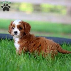 This beautiful Cavapoo puppy is sweet natured, happy, and ready to be the best addition to his forever family! Tinker is socialized, family raised with children, and will love being by your side! He has been seen by a vet and is up to date on shots and de-wormer. Additionally, the breeders will provide a 30 day health guarantee and an extended genetic health guarantee when Tinker heads home. Hear more about this cutie and schedule your visit by calling Mark and Emma Mae Kauffman today!