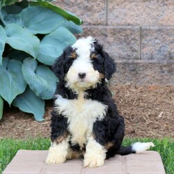 This is Hachi, a well-socialized Mini Bernedoodle that loves attention. He is vet checked and up to date on shots & wormer plus the breeder provides a 1-year genetic health guarantee for him. And, both of his parents are available to meet. If you think Hachi is the perfect match for you, call the breeder today and schedule a visit.