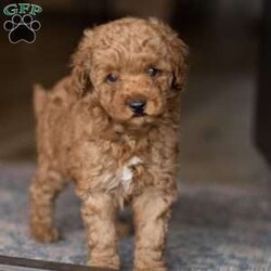 Fig is an adorable F1B mini goldendoodle with a calm, laid back personality who is looking for a forever home. He is very playful and well socialized by our four children. He will be vet checked, up to date on shot and wormer and will come with a 1 year health guarantee. His parents are both our family pets. His mother, Cedar is a 15 lb mini goldendoodle and his father, Finn is an 8 lb mini poodle. If you would like to meet Fig or if you have any questions, please reach out to Jess.