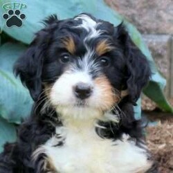 This is Hazel, a well-socialized Mini Bernedoodle that loves attention. She is vet checked and up to date on shots & wormer plus the breeder provides a 1-year genetic health guarantee for her. And, both of her parents are available to meet. If you think Hazel is the perfect match for you, call the breeder today and schedule a visit.