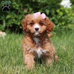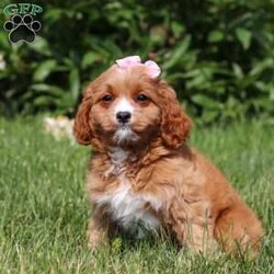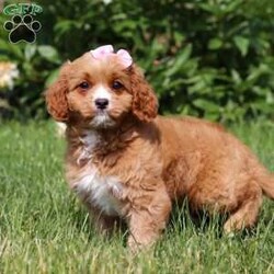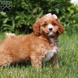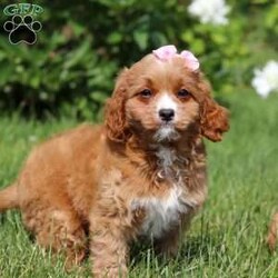 Meet the sweetest F1 Cavapoo puppy named Eden! She is a delightful girl that is filled with affection and energy, she has already stolen our hearts with her playful personality and sweet nature. Her beautiful soft, coat is perfect for cuddling, and her expressive eyes are full of curiosity and mischief. Whether she’s bouncing around in the backyard, playing with her favorite toys or snuggling up for a nap, this girl is a little day brightener:) She would be the perfect addition to any loving home!