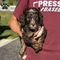 Meet Teddy! He is a very friendly chocolate multigen- chocolate colored Bernedoodle puppy! He will only get to be around 18-22 pounds. He loves kids, is up to date on all shots and wormers. Call or text for a video or more details!