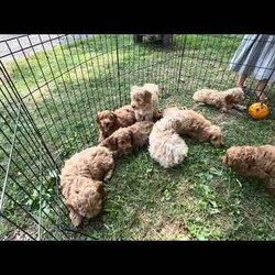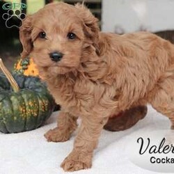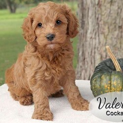 Valerie is a medium red female Cockapoo puppy born on July 16, 2025. She is a single pup, no siblings, but is socialized with our children. She loves to play in the yard and cuddle. This sweet baby girl is ready to find her forever home.