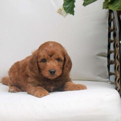 This family raised Miniature Goldendoodle puppy is socialized and ready to wiggle his way into your heart! Otto loves to have fun and is sweet as can be! He’ll come home vet checked, up to date on shots and de-wormer, and with a health guarantee provided by the breeder.