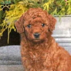 Chelsea is a sweet and affectionate F1BB Miniature Goldendoodle puppy who is playful as can be! This cutie is socialized, family raised with children, and great with the kids. Chelsea comes home with a health guarantee provided by the breeders, plus has been seen by a vet and is up to date on shots and de-wormer. This little sweetie is ready to meet you!