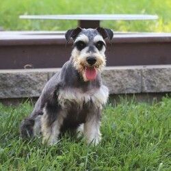 Meet Trace, an absolutely adorable AKC Miniature Schnauzer with a personality as charming as his signature whiskers! Full of curiosity and playful energy, he loves exploring new surroundings, chasing toys, and showering everyone with affection. With his bright, expressive eyes and soft, wiry coat, Trace is impossible to resist. Whether he’s snuggling close for a cozy moment or showing off his playful antics, he is sure to bring endless joy, love, and companionship to any home lucky enough to have him.