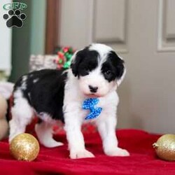 Meet Leo, an irresistibly adorable Sheepadoodle puppy who’s like a little bundle of holiday magic! With his fluffy, soft coat and bright, twinkling eyes, he spreads joy wherever he goes. Full of playful energy and gentle curiosity, Leo loves to explore, romp through the snow—or the living room—and snuggle close for cozy, festive cuddles. With his charming personality and heart full of love, he’s sure to bring warmth, laughter, and holiday cheer to any home lucky enough to welcome him.