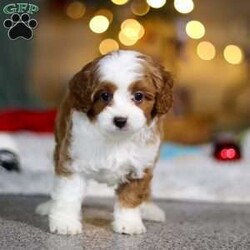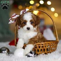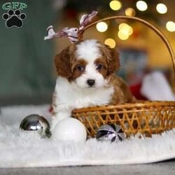 Say hello to Champ— a sweet Cavapoo who beautifully blends the gentle charm of a Cavalier King Charles Spaniel with the intelligence and playful nature of a Miniature Poodle. With his soft, wavy coat, soulful eyes, and happy personality, he is truly irresistible.