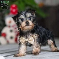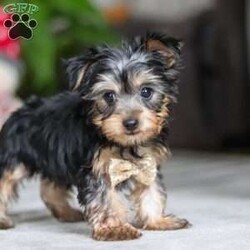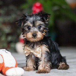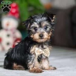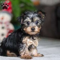Hi, I’m Jingles — a tiny Yorkshire Terrier puppy with a whole lot of cuteness packed into my little body! I have a soft, silky coat, bright twinkling eyes, and the happiest little prance that shows just how excited I am about everything. I love playing with toys, exploring new places, and soaking up all the cuddles I can get. I may be small, but I’m full of personality, sweetness, and charm — and I’m ready to bring joy to everyone I meet!