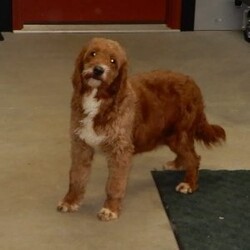 Prepare to fall in love!! I have the sweetest little mini goldendoodle face you have ever seen… My name is Rusty and I would love to come home with you! I am sure with one look into my warm, sweet eyes and I’ll be sure I will have captured your heart already! I am very happy, playful and very kid friendly! I stand out above the rest with my beautiful red coat with white markings!! Full of personality and always ready to give amazing puppy kisses, I would love to fill your home with all of my puppy love! I have been vet checked and I am up to date on vaccinations and dewormings and I will also come with a 1-year guarantee with the option of extending it to a 3-year guarantee. Shipping is available anywhere in the USA! My mother is Willow, our sweet 28# mini goldendoodle, and my father is Atlas, our handsome 16# AKC red miniature poodle and Atlas is also genetically tested clear! That makes me an F1b mini goldendoodle and I will grow to approx. 18-24# and I will be hypoallergenic and nonshedding!! Why wait when you know I am meant to be yours? Call or text Martha to make me the newest addition to your family and get ready to spend a lifetime of tail wagging fun! (7% sales tax on in home pickups)